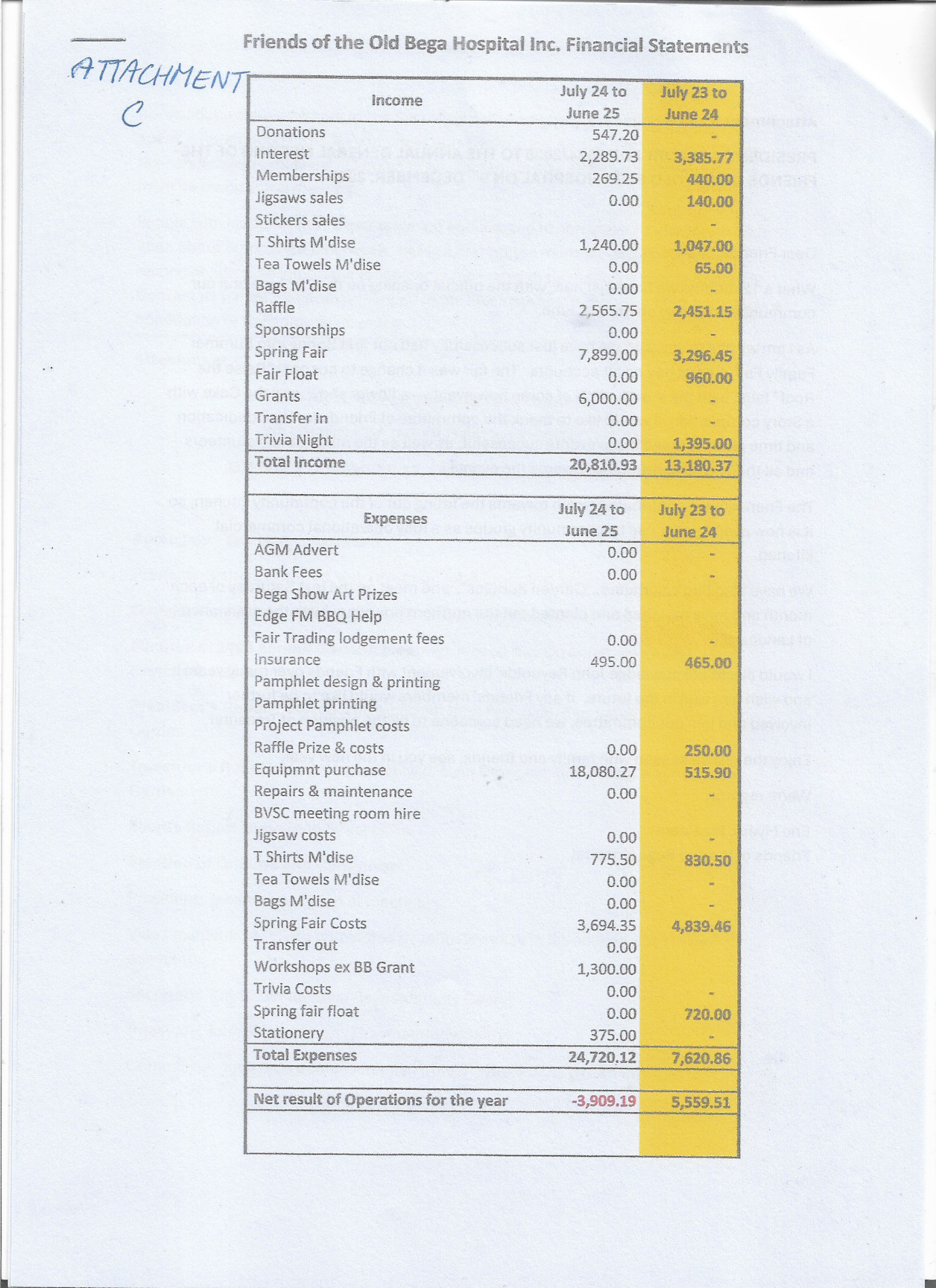 OF FRIENDS OF THE OLD BEGA HOSPITAL INC. ON