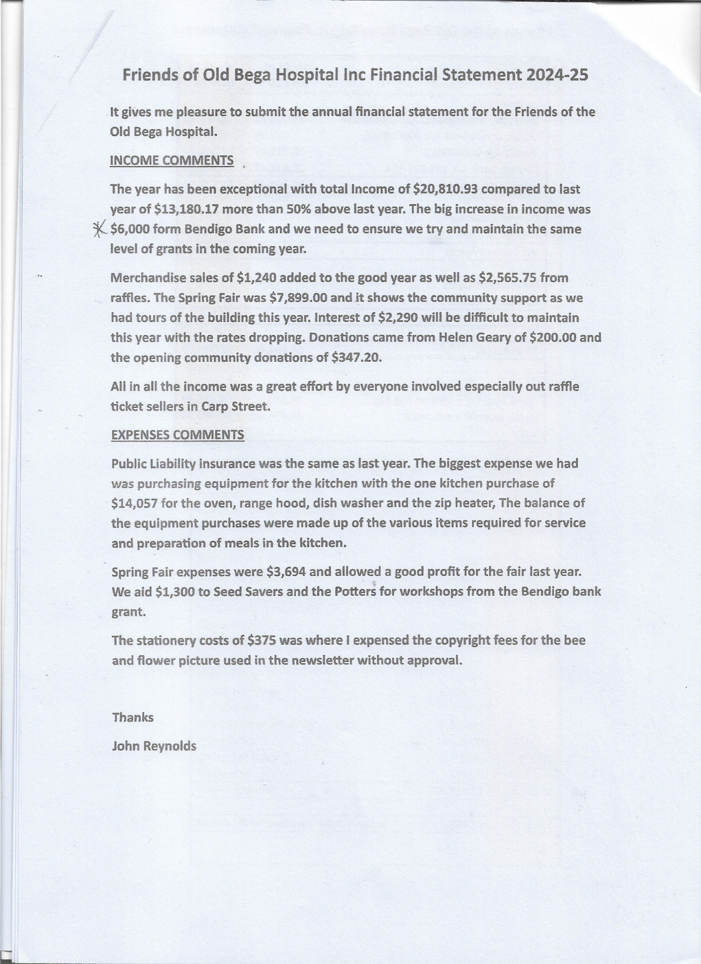 PRESIDENT’S REPORT FOR 2024/2025 TO THE ANNUAL GENERAL MEETING OF THE FRIENDS OF THE OLD BEGA HOSPITAL ON 9TH DECEMBER, 2025